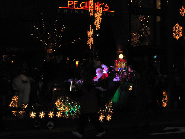 Santa waving to the crowds as he rides down Bellevue Way